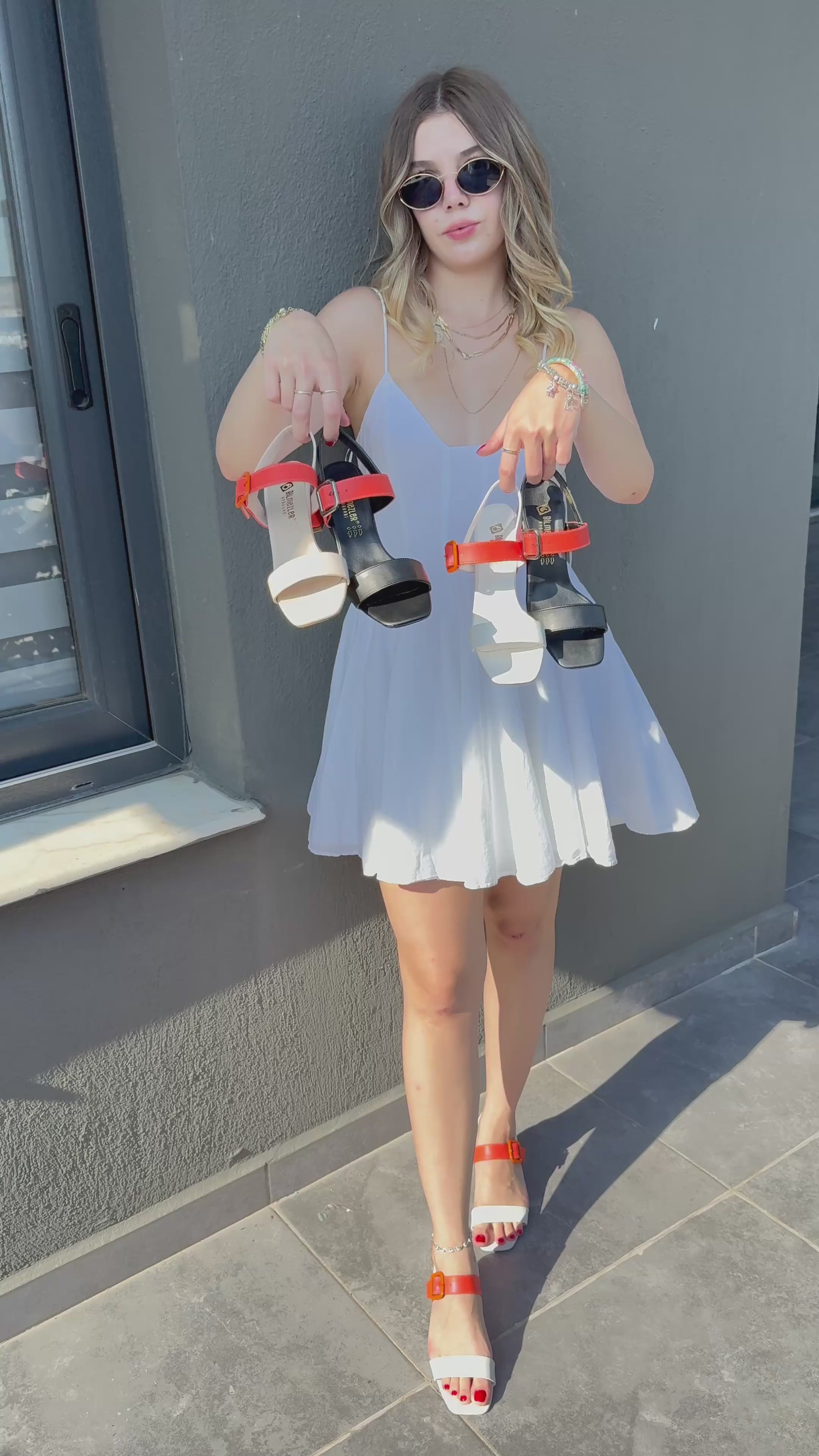 Year Beyaz Cilt Turuncu Detaylı Beyaz Topuklu Ayakkabı